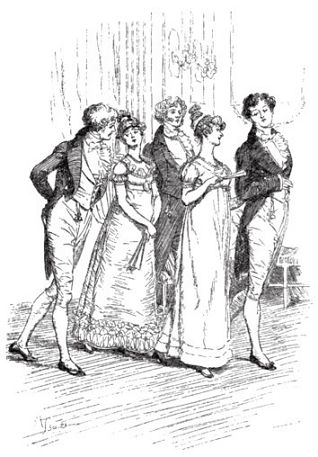 “Oh! She is the most beautiful creature I ever beheld! But there is one of her sisters sitting down just behind you, who is very pretty, and I dare say very agreeable. Do let me ask my partner to introduce you.”