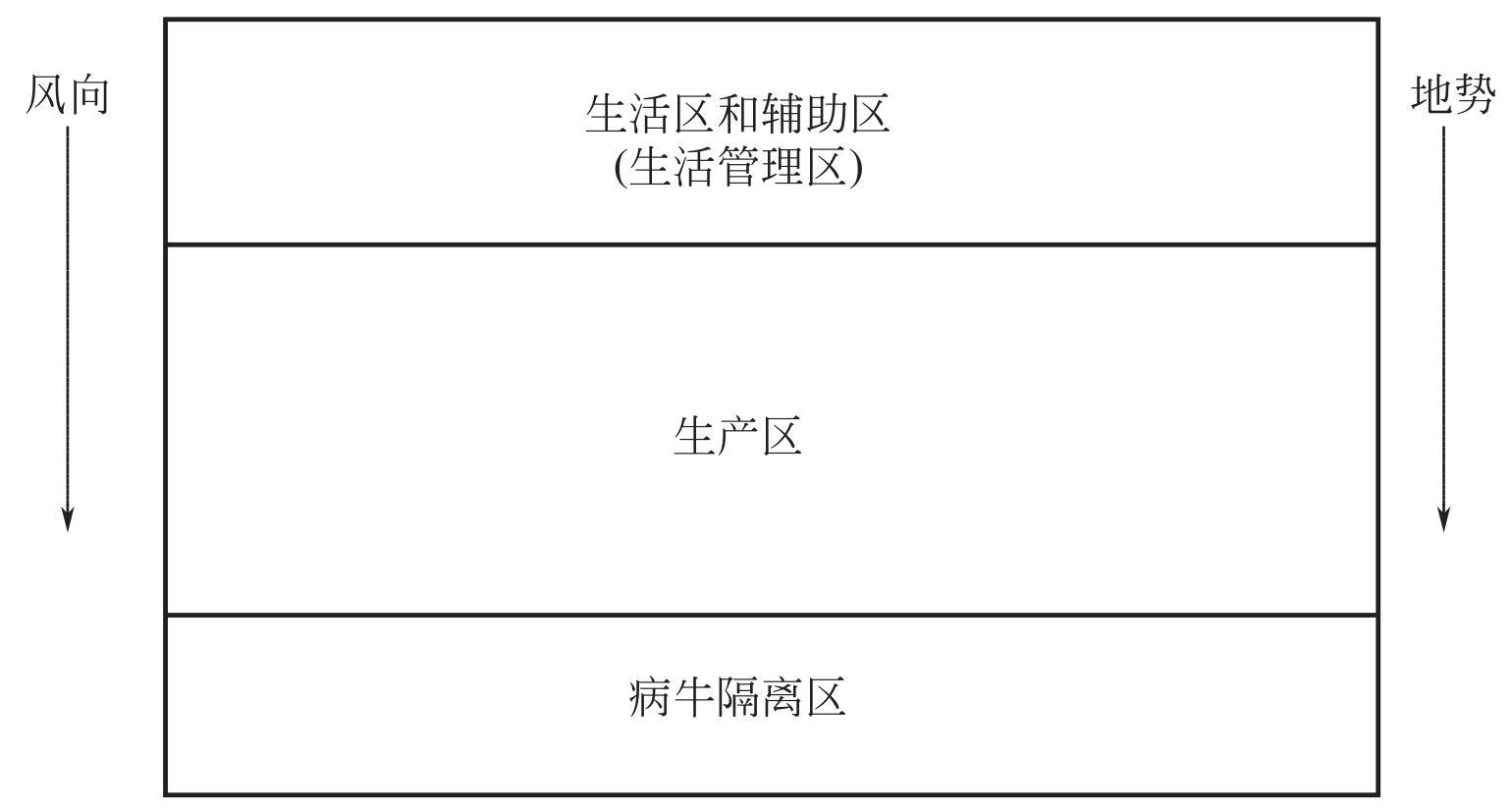 牛场一般分成生产管理区、生产辅助区、生产区、病畜隔离与粪污处理区几大功能区(见图2-1),各区之间保持一定的卫生间距。
