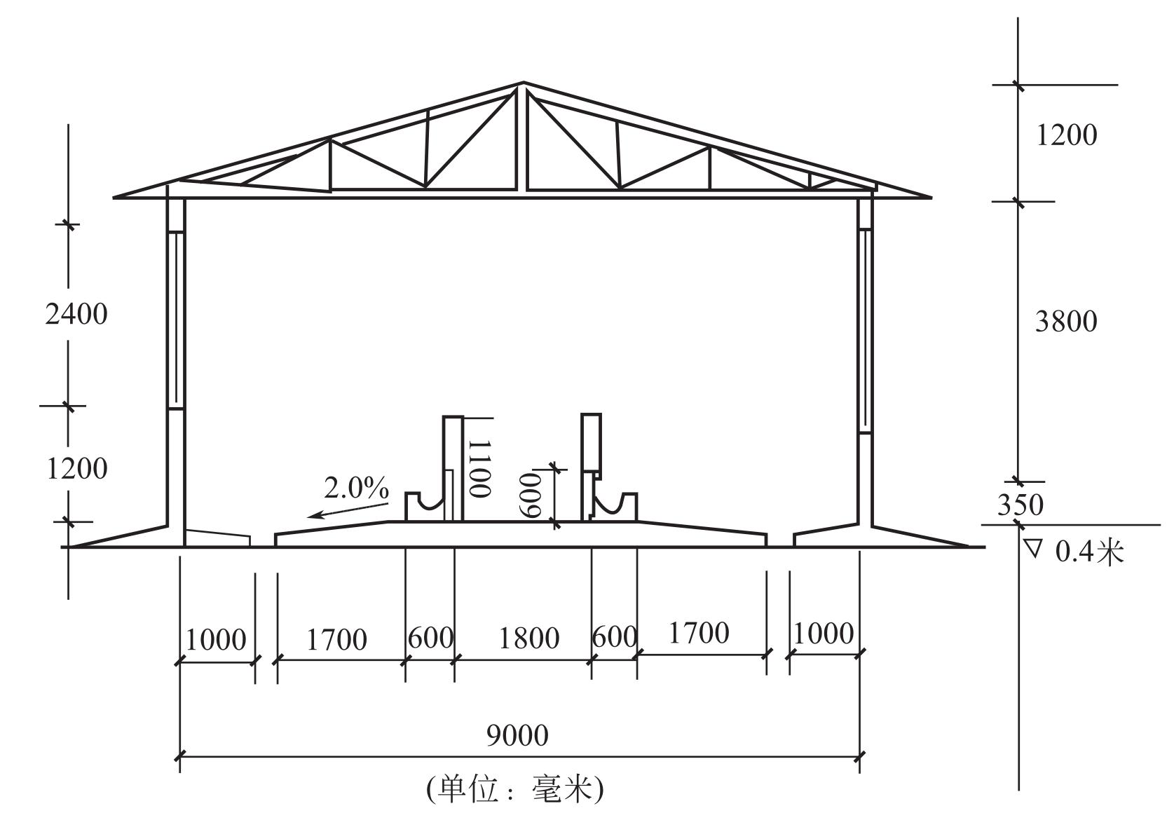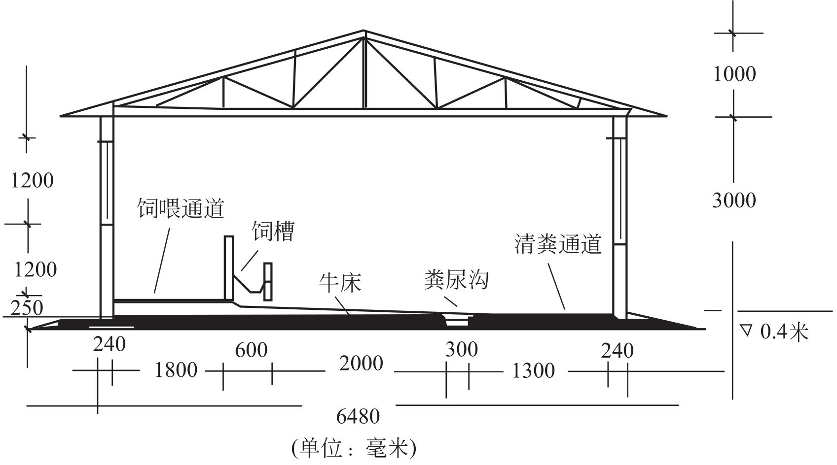 图2-4 肉牛舍剖面图