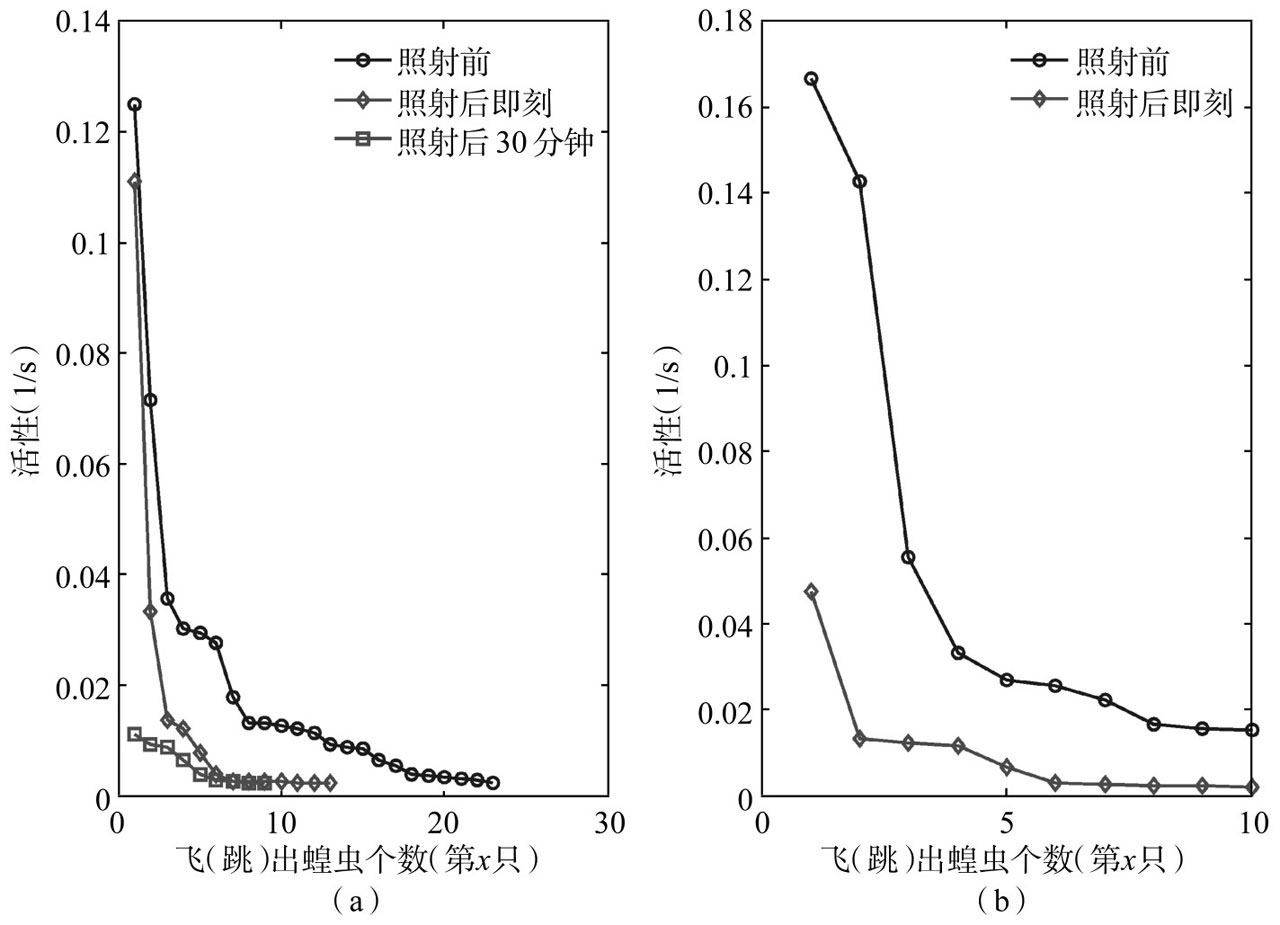 图4 亚洲小车蝗成虫激光辐照后活性统计