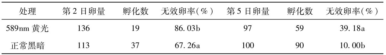 表2 夜间黄色光照(20~40lx)对交尾的影响(无效卵率以未孵化率表示)
