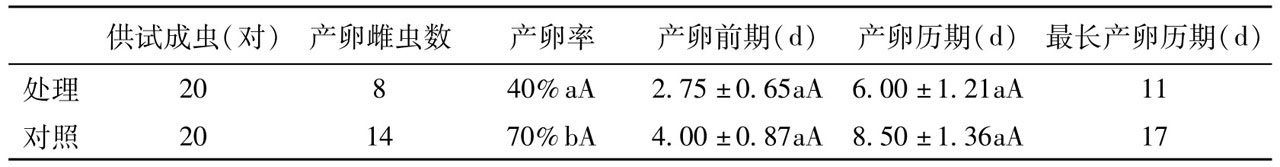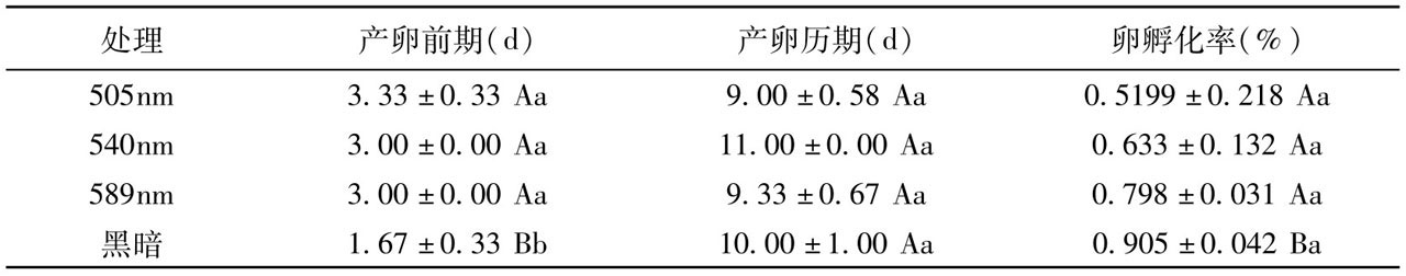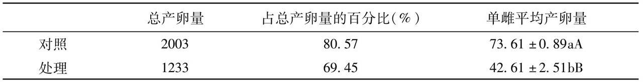 注:平均产卵量=平均数±标准误;同列字母相同者表明t测验,分析在0.05(小写字母)或0.01(大写字母)水平上差异不显著。