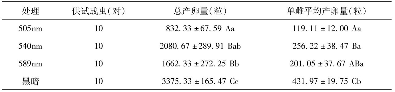 表5 3种不同波长绿-黄光对甜菜夜蛾产卵量的影响(蒋月丽,2008a)