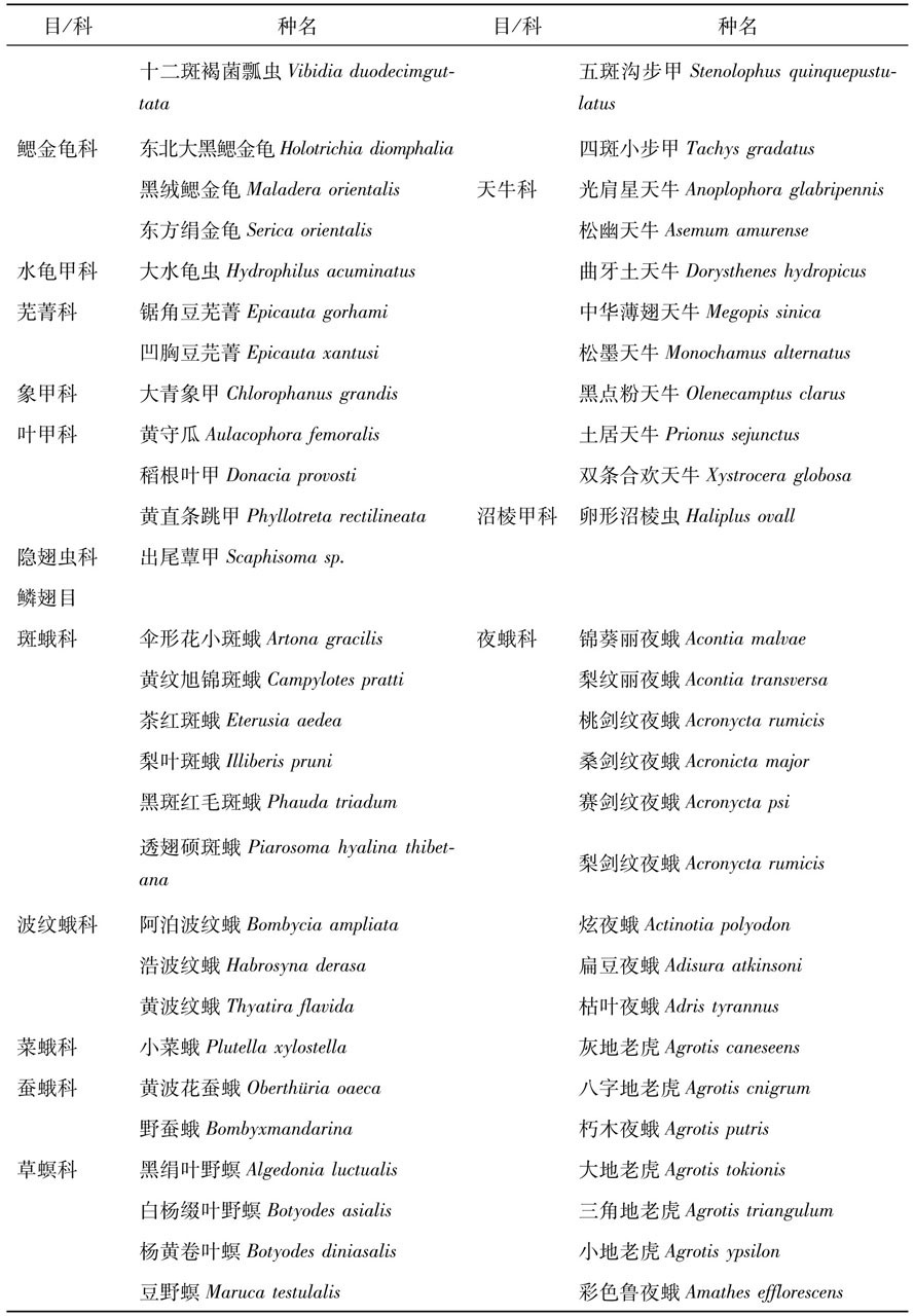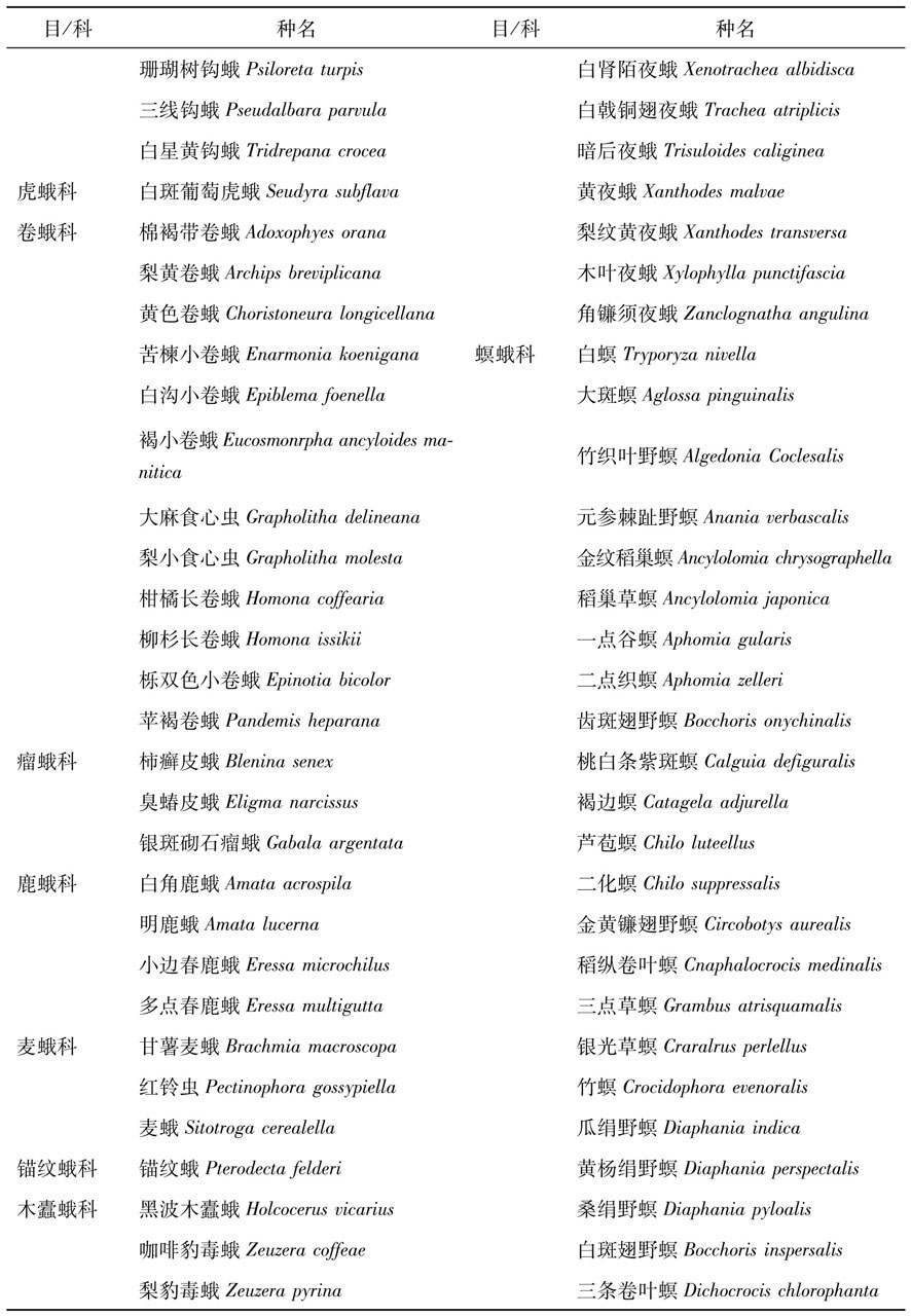 表1 湖北省杀虫灯诱捕昆虫的种类