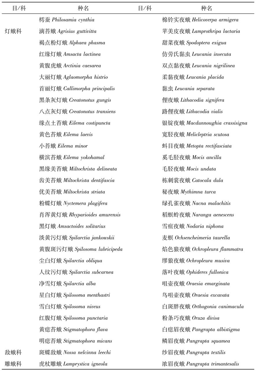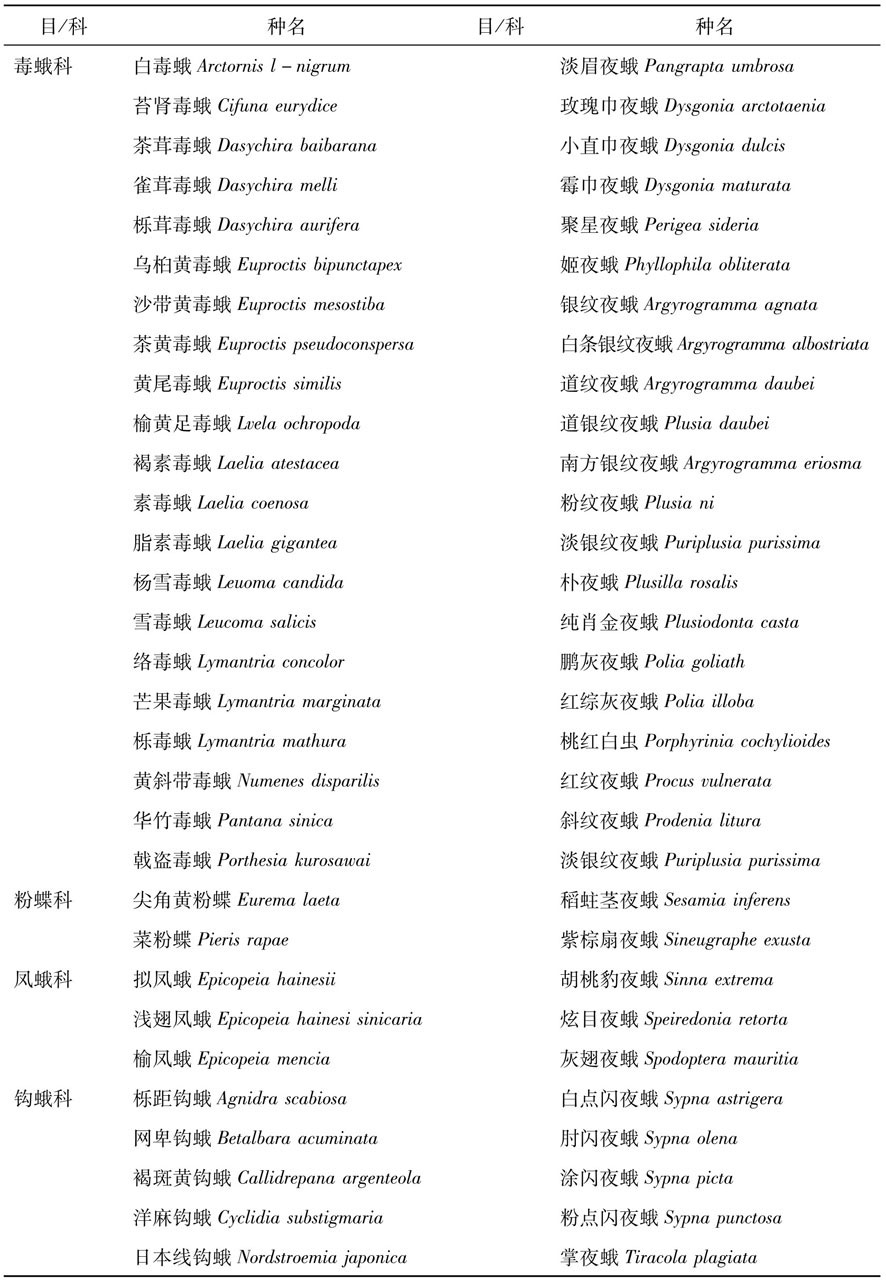 历史资料记录的灯诱的昆虫种类、华中农业大学昆虫标本馆保存的灯诱的昆虫种类、大田试验灯诱的昆虫标本以及基层单位提供的灯诱昆虫标本。