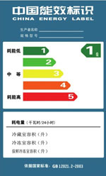 能效标识又称能源效率标识,粘附在耗能产品或其最小包装物外壳上,表示产品的生产者、型号、能效等级等指标的一种信息标签,以引导和帮助用户和消费者选购高能效节能产品。能效标识分为5个等级:等级1表示产品达到国际先进水平,最节电,耗能最低;等级2表示比较节电;等级3表示产品的能源效率为我国市场的平均水平;等级4表示产品能源效率低于市场平均水平;等级5是市场准入指标,低于该等级要求的产品不允许生产和销售。