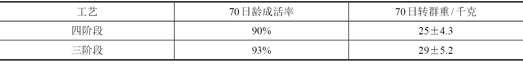 仔猪断奶到培育舍因混群造成的打斗,影响了仔猪的生长发育。三阶段工艺原圈饲养不存在打斗。到育肥舍时两窝公母分群便可,减少了转群的应激。