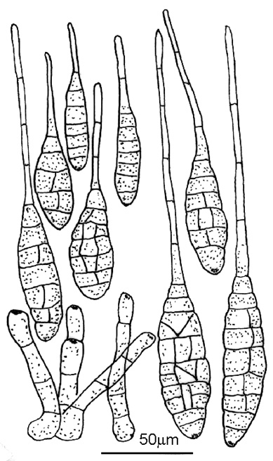 西瓜瓜链格孢叶枯病病菌分生孢子梗和分生孢子(张天宇)