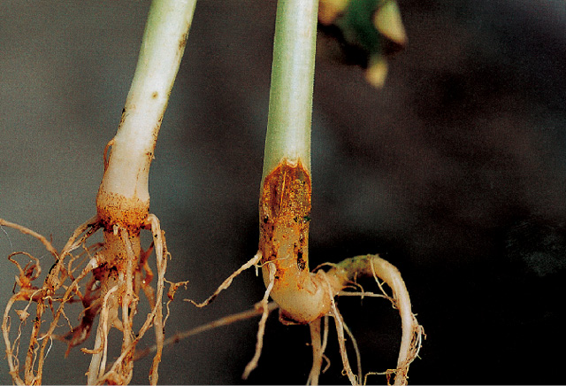 小西瓜立枯病茎基部病斑放大