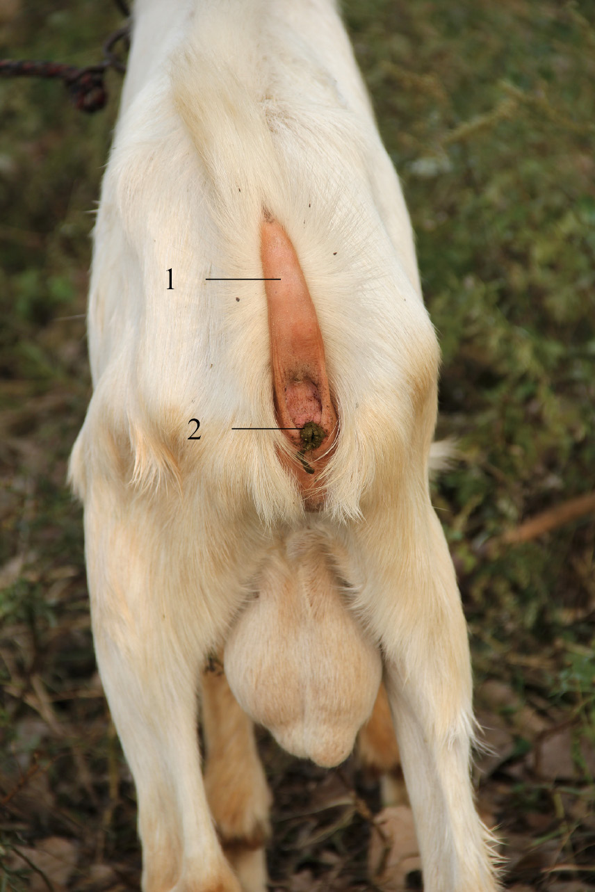 肛门:健康的山羊肛门干净、无污秽,若腹泻,肛门常被粪便污染,很脏。