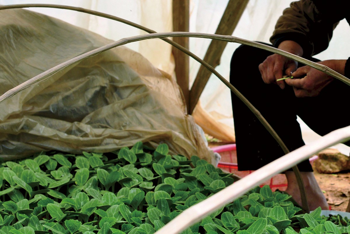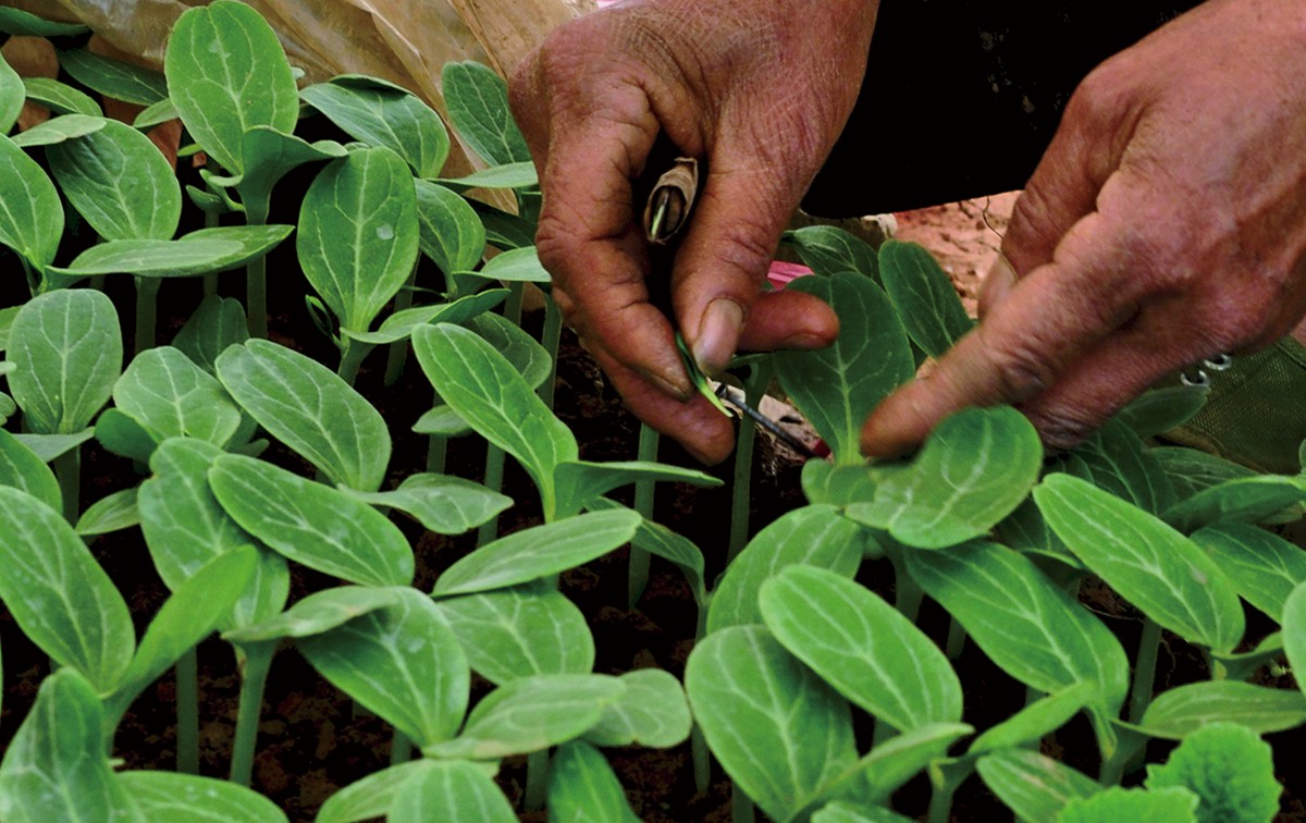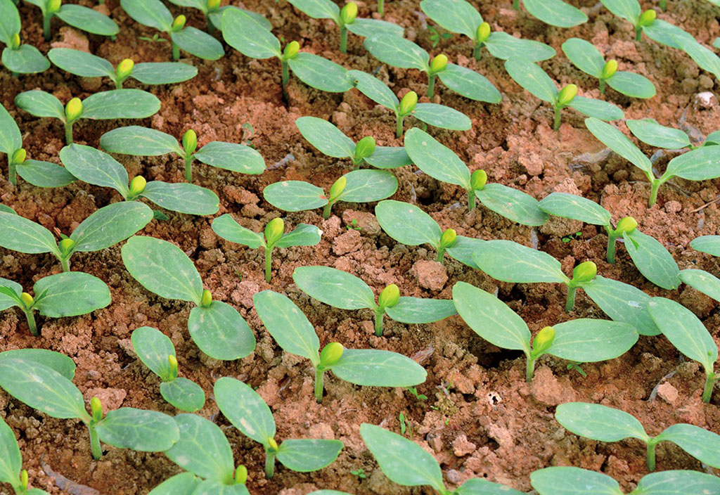 图2-14 西瓜嫁接后接穗与砧木片叶成“十”字形