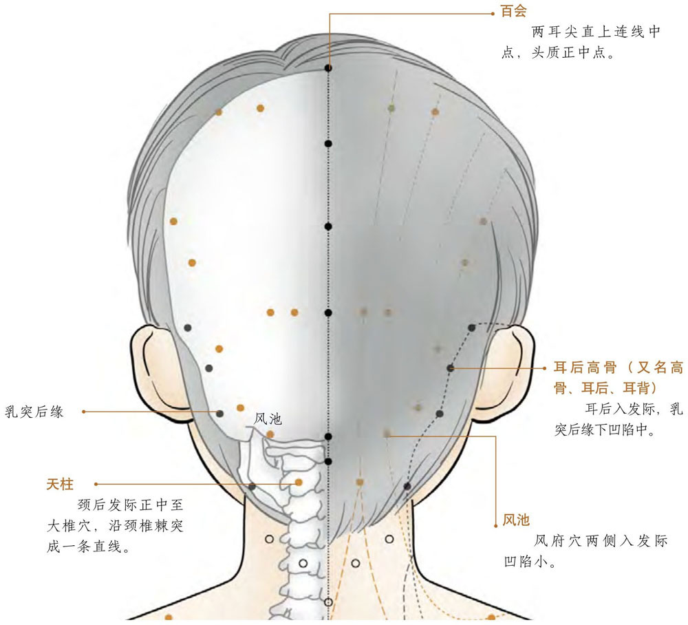 [位置]两耳尖直上连线中点,头质正中点。