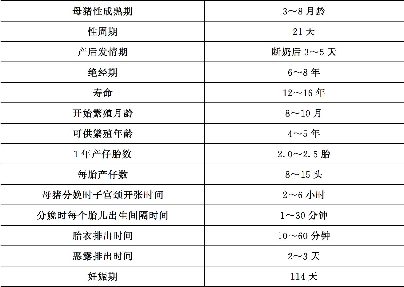 母猪繁殖的生理常数见表1-1。