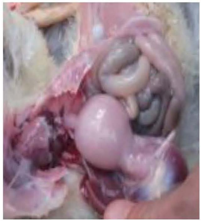 【病理变化】 卵黄性腹膜炎;腹腔内有软壳蛋。