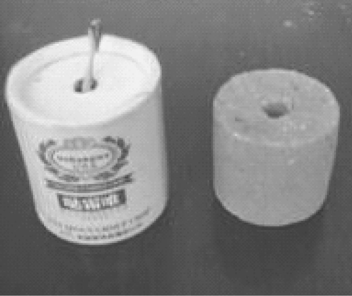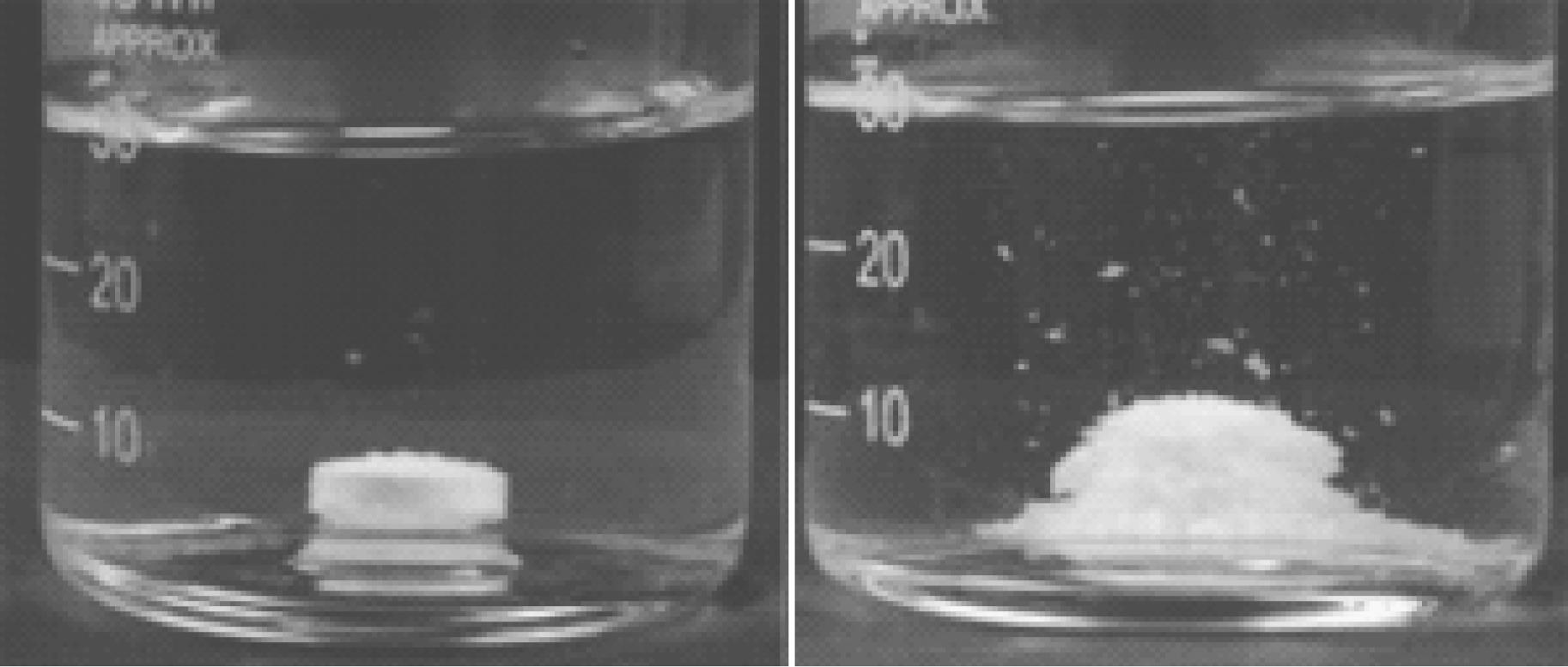 可分散片剂(water dispersible tablet)是指遇水可迅速崩解,形成均匀混悬液的片剂,是国外近年来研究较热门的一种新型制剂。它集中了在水中自动崩解、形成悬浮液、供喷雾使用的泡腾片剂与水分散粒剂、吸潮分解熏蒸毒杀害虫的片剂的优点于一身;又吸收了片剂的外形特点,见图1-13。因此,可分散片剂较水分散粒剂对环境更安全,保持了泡腾片剂的崩解速率快、水分散粒剂悬浮率高的优点,使其在保证药效不降低的前提下对环境和施药者更安全,没有粉尘,减少了对环境的污染。由于可分散片剂具有上述诸多优点,因此近年来得到了较快的发展。