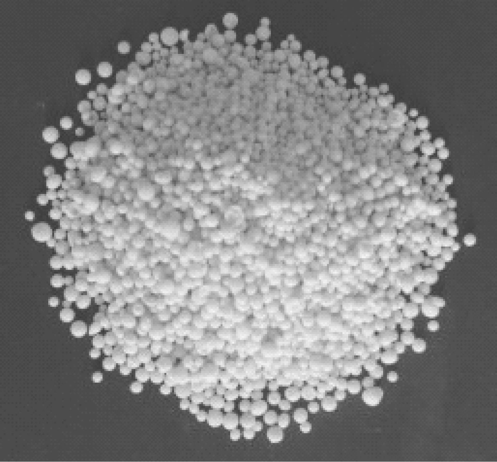水分散粒剂(water dispersible granules,代码WG)又称干流动剂、水悬性颗粒剂,是一种入水后能迅速崩解,分散成悬浮液的粒状农药剂型,见图1-6。它是在可湿性粉剂和悬浮剂的基础上发展起来的新剂型,它具有分散性好、悬浮率高、稳定性好、使用方便、有效成分含量高(有的高达90%)等特点,避免了可湿性粉剂产生粉尘、悬浮剂包装运输不便、贮藏易产生沉淀、结块、流动性差、粘壁等缺点。