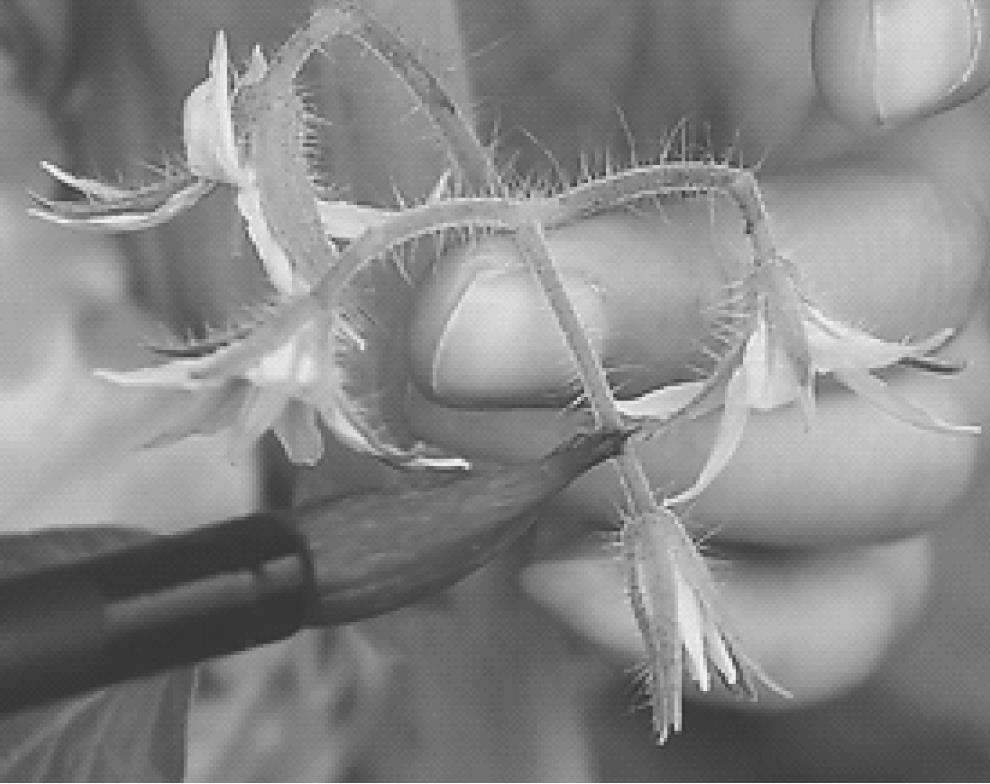 涂抹法是将药液涂抹在植株的某一部位上的一种施药方法,如图1-27所示。一般蔬菜上应用较多的是植物生长调节剂,如用药剂涂抹瓜果类的花器,可以保花、保果,提高坐果率。涂抹法能集中用药,省药,减少污染,但费工。