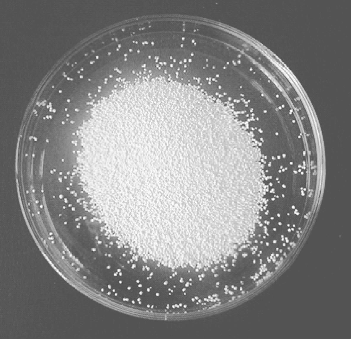 粒剂(granules,代码G)是由原药、载体和助剂加工而成的粒状农药剂型,见图1-10。该剂型的优点是:①使高毒农药低毒化使用,如有的农药在禁止喷雾使用的情况下,可加工成颗粒剂,采用穴施、撒施等方法使用,用来防治害虫;②可控制有效成分释放的速率,延长持效期;③使液态药剂固态化使用;④降低药害出现概率,减少环境污染,避免伤害有益昆虫;⑤使用方便,提高劳动效率,但粒剂加工费一般比粉剂高,多数情况下使用方法也受到一定的限制。
