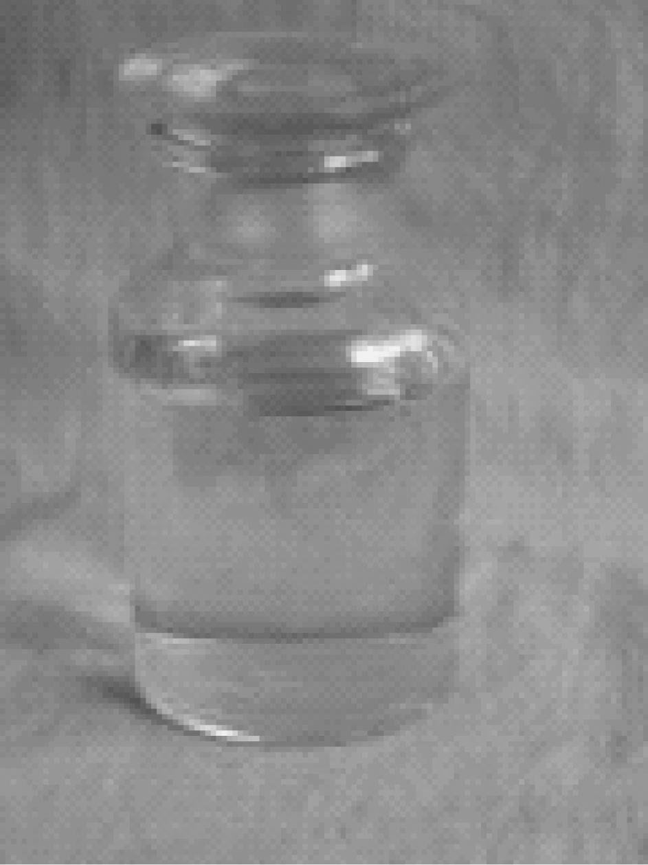 水剂(aqueous solutions,代码AS)是将水溶性原药直接溶于水中而制成。一般情况下,用于加工水剂的农药原药应易溶于水,且水溶液化学稳定性好,见图1-8。为了使水剂喷洒在植物表面有一定的展着性,常加入湿润剂作为助剂。与乳油相比,水剂加工时不需要有机溶剂,仅需加适量的表面活性剂,而药效与乳油相当。水剂的成本低,但有的农药品种不稳定,不耐贮藏,易于水解失效,湿润性差,附着力弱,持效期也很短。