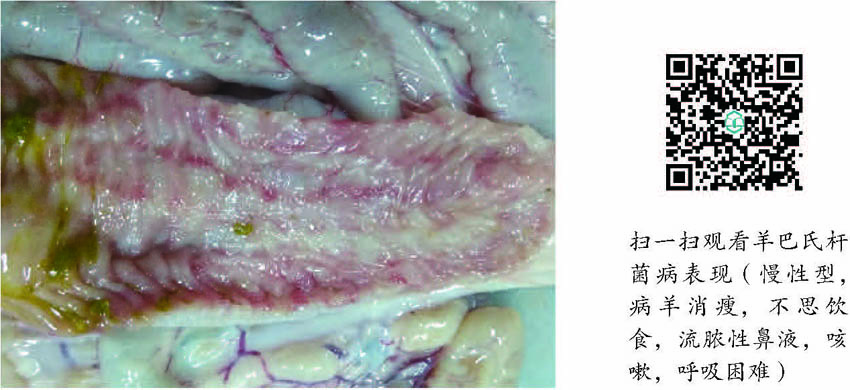 (3)慢性型病羊消瘦,不思饮食,流脓性鼻液,咳嗽,呼吸困难。有时颈部和胸下部发生水肿。角膜炎,腹泻。临死前极度衰弱,体温下降。病程可达3周。