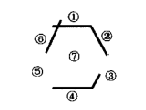 4.2.3 加样:用微量移液器或带有6~7号针头的0.25mL注射器,吸取抗原悬液滴入中间孔(图1的⑦号),标准阳性血清分别加入外周的①和④孔中,被检血清按编号顺序分别加入另外4个外周孔(图1的②,③,⑤,⑥号孔)。每孔均以加满不溢出为度,每加一个样品应换一个滴头。