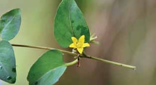 外观:多年生蔓生草本。根茎:茎柔弱,平卧延伸,长20~60厘米,表面灰绿色或带红紫色。枝叶:叶对生;叶柄长1~3厘米,无毛;叶片近卵圆形,稍肉质,透光可见密布的透明腺条,两面无毛。花朵:花单生于叶腋,花梗通常不超过叶长。花冠黄色,辐状钟形,长7~15毫米,5深裂,裂片狭卵形至近披针形,先端具黑色长腺条。花期5~7月。果实:蒴果球形,直径3~5毫米,无毛,瓣裂。果期7~10月。