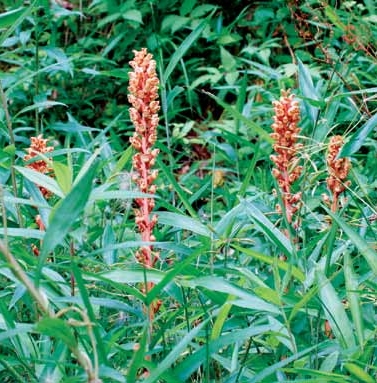 寄生草本,全株赤黄,无叶绿素,叶片退化为鳞片状。