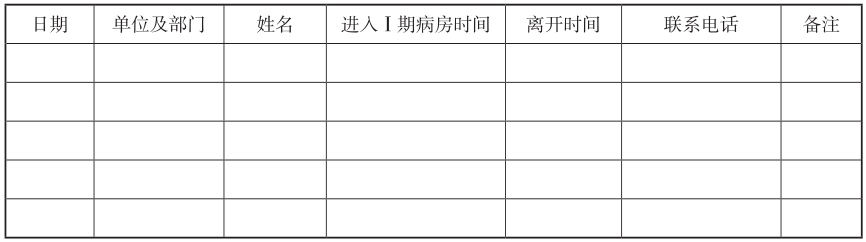 Ⅰ期病房来访登记表
