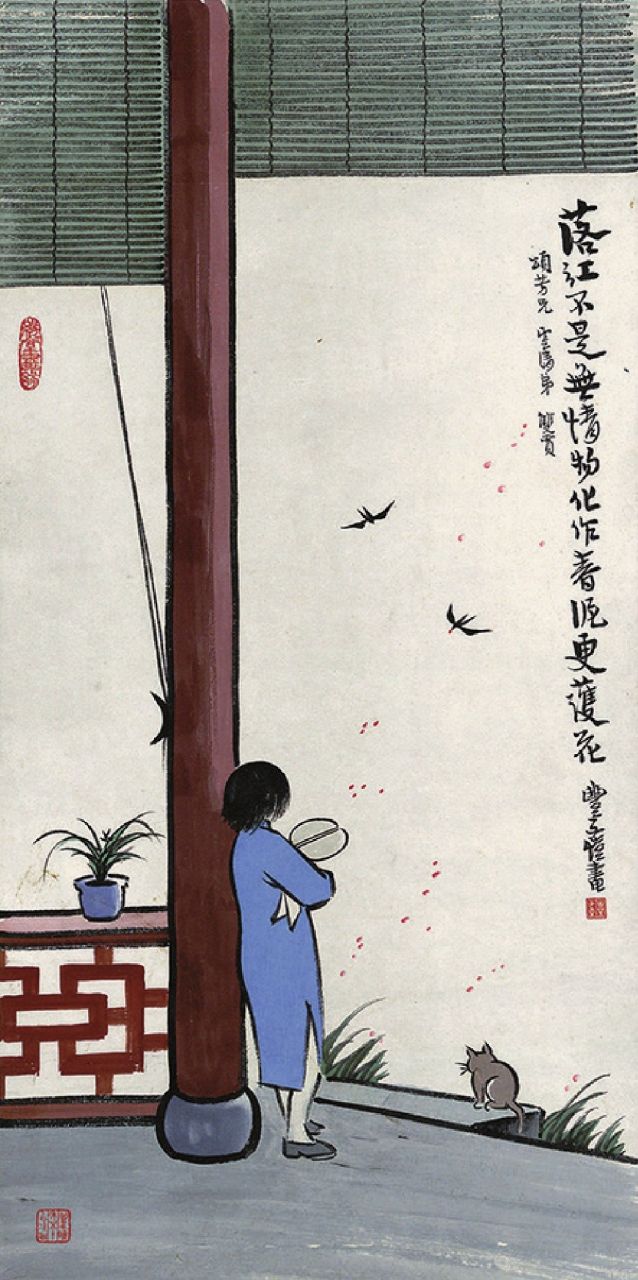 图1-4 丰子恺 落红不是无情物 纸本设色