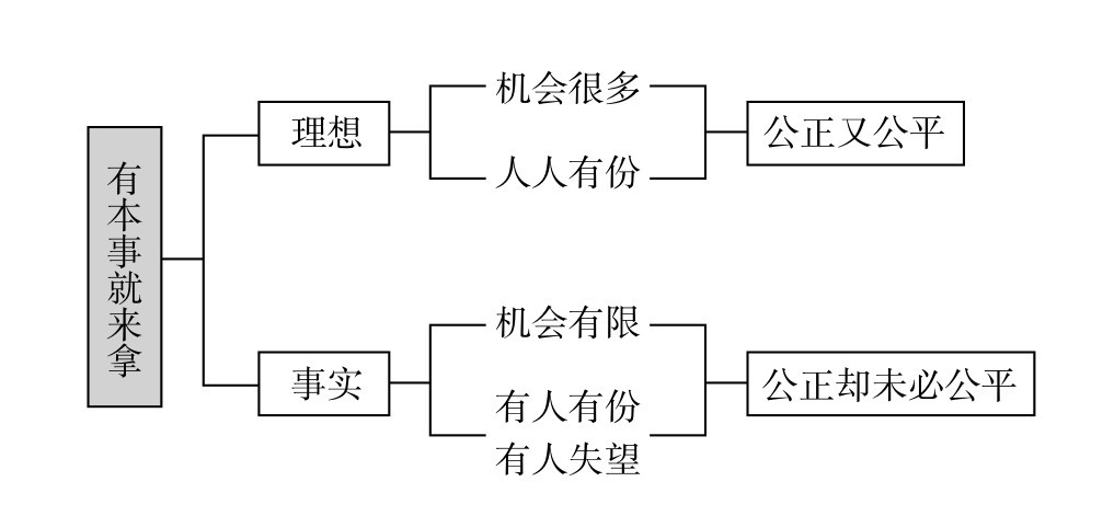 公正地提供机会,有本事就来拿。但是机会不够多,不能普遍地提供,所以不见得公平。这一次拿不到,等待下一次,公正未必公平,大家才能够谅解(如图2-1)。